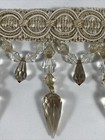 (sold By The Yard) 3.5” Tear Drop Beaded Trim Fringe Gimp Top- Taupe/clear Ivory