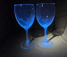 2 Vintage Clear Crystal Stemmed Wine Glasses, Blue Manganese Glow