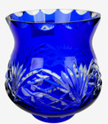 Vintage Bohemian Cobalt Blue Cut To Clear Crystal Votive Candle Holder 3.5" New