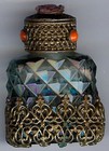 Czech Glass And Metal Filligree Perfume Bottle Gold And Green