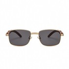 Gold Frame Vintage Woodgrain Black Tint Lens Men's Fashion Pilot Sunglasses