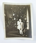 1940s Adorable Little Girl Christmas Tree Toys Doll Holiday Vtg Snapshot Photo