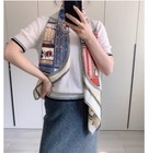 New Boutique 23 Momme Silk Double-faced Satin Pink Blue Printing Scarf 110cm