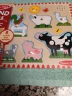 Melissa And Doug Wooden Farm Animals Puzzle With Sound 8 Pc With Pegs Ships Free