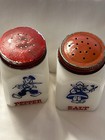 Vintage Milk Glass Dutch Boy & Girl Salt/pepper Red Design Retro Kitchen