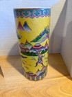 Large Antique 19th C Chinese Famille Rose Yellow Porcelain Vase 11"h X 4.5"d