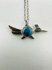 Vintage 925 Sterling Silver Native American Turquoise Roadrunner Pendant Broch