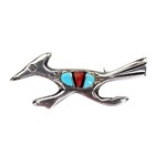 Vtg 70’s Native American Sterling Silver Roadrunner Pendant Turquoise Coral Nice