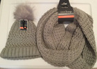 Gray Pom Hat & Infinity Scarf Knit Set Acrylic Faux Fur Rolled Bottom One Size