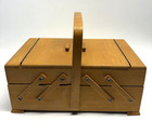 Vintage Accordion Fold out Solid Wood Sewing Box