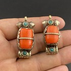 Nepalese Tibetan Handmade Red (resin) 2 Brass Beads Beautifull Tibet Nepal