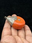 Coral Silver Plated Prayer Box Pendant Tibetan Ethnic Handmade Nepal Pd1256a