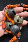 (b) Antique Naga Konyak Necklace Orange Beads Brass Bells