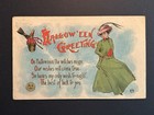 Halloween Antique Postcard 239 Witch In A Basket Or Thimble Haunted Moon 1912