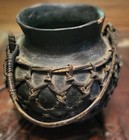 Vintage Antique Filipino Bamboo Wrapped W/handle Clay Pottery Jar - Phillipines