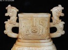 9'' Fine Chinese Old Jade Phoenix Beast Zun Bottle Vase Pitcher Pot Jar Statue