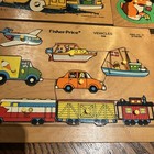 Vtg 1970s Fisher-price #606 Vehicles Wood Puzzle 8 Pc Wooden Toy Train Car Boat