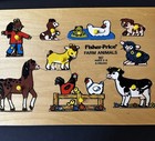Puzzle In Legno/wood-fisher-price 523-e-animals And Their Babies-anni 80-vintage