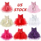 Baby Princess Girls Dress Flower Christening White Wedding Party Kids Clothes Uk
