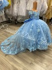 Sky Blue Tulle Puffy Flower Girl Dress For Wedding Princess Kids Birthday Party