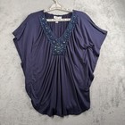 Dressbarn Size S Purple Embellished V Neck Blouse Boho Flowing Draped Top Y2k