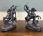 Pair Of Antique French Bronze Statues On Black Marble Bases