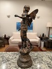 A Large Pair Of Antique French Bronzed Spelter Allegorical Sculptures