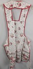 Vintage Cotton Kitchen Apron Full Over The Head White Green & Red Flower Floral
