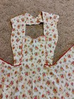 Vintage Cotton Full Apron Handmade Flowers Red Trim Rounded Edge Preowned Bib