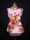 Vintage 60’s 70's Pink Hippie Bright Flower Power Home Made Full Apron Open Back