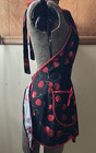 Vintage Full Apron Cherries On Black Cotton Red Trim Free Size Lovely Darts!