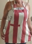 Vintage Full Apron Retro Hostess Red White Stripe Pocket