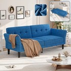 Costway Convertible Futon Sofa Bed Folding Recliner W/usb Ports&power Strip Blue