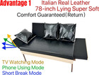 Stylish 78" Real Leather Futon Sofa Bed With Reclining Chaise Lounge, Black