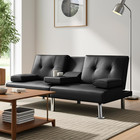 Futon Sofa Bed Black Pu Leather With Cupholders Modern