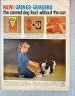 Vintage Print Ad 1960's Gaines Burgers General Foods Canned Dog Food Without Can