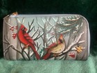 Rare Anuschka Handpainted Genuine Leather Eyeglass Case Lovely Cardinals Limited
