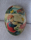 Antique German Paper Mache 2 7/8” Long Easter Egg Candy Container Boy & Horn