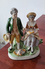 2 Antique German Porcelain Bisque Nodder Doll Figurines - Boy And Girl