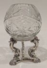 Godinger Crystal Rose Bowl 5" Candle Holder, Hand Cut Mouth Blown, Silver Plated