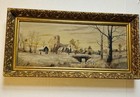 Vintage Painting With Antique Gold Frame 15x30 Inches Framed Original Art Oil