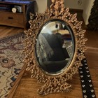Gorgeous Victorian Fleur-de-lis Table Mirror 1890-1910 Cast Iron Gold Gilt