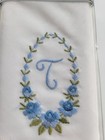 Vintage Ladies Hankie Embroidered Blue Floral Monogrammed T Original Packaging