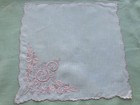 A+ Pink Vintage Hankie White Monogram D Madeira Style Hand Embroidered Wedding