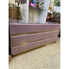 Vintage 1970s Lavender (or Bright Pink) Dresser With Gold Trim, And Glass Top