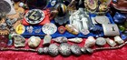 Grandpa's Junk Drawer Lot Buckles Medallions Old Bottles Miniature Things Pins