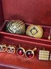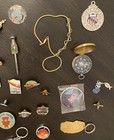 Vtg Grandpas Junk Drawer Lot Cuff Links Hat Pin Keychains Magnets Random Items