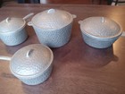 Vintage Hammered Aluminum Salesman Sample 4 Pots With Lids