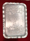Vntg Tray Wrought Hammered Aluminum Floral Design Relief 13" X 9"