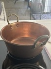 Vtg Large 12” Hammered Copper W Brass Handles Food Safe Jam Stew Cook Rustic Pot